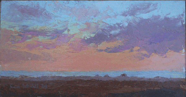 I consider myself a painter of plein air landscapes, still lifes, and figures in the American Impressionist tradition. I am interested in exploring color and light, and work mostly with a palette knife. I particularly enjoy painting sunsets. Working outside, surrounded by light reflecting from the sky on the landscape is exciting and inspiring. I'll usually take several small masonite boards with me and paint until I can't see anymore, ending up with a progression of the sunset portrayed in a way that no photograph could.